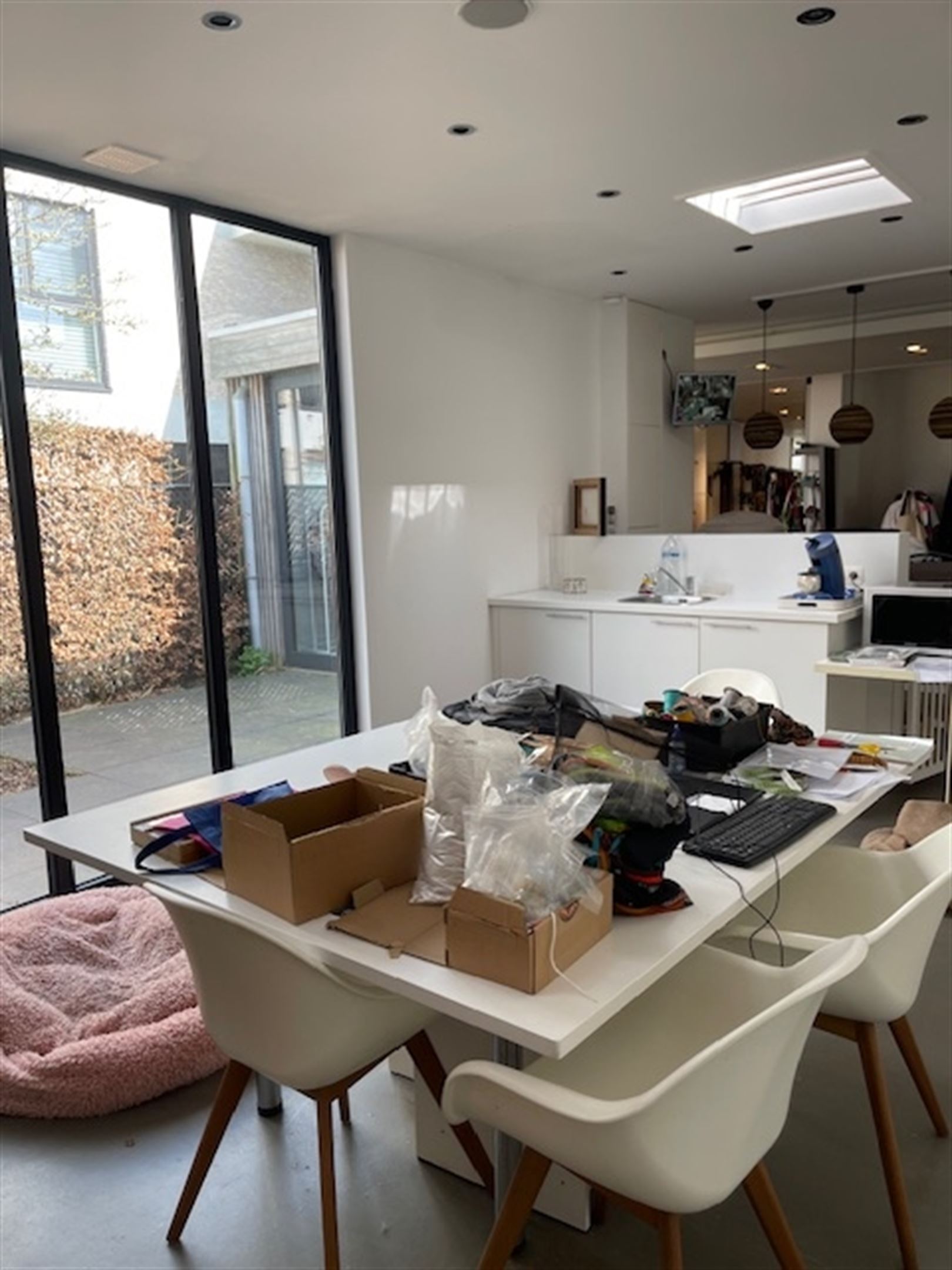 Achteraan geniet je van een aangenaam zicht op een groen en rustig binnenterras/tuin — een unieke troef voor zowel klanten als personeel.