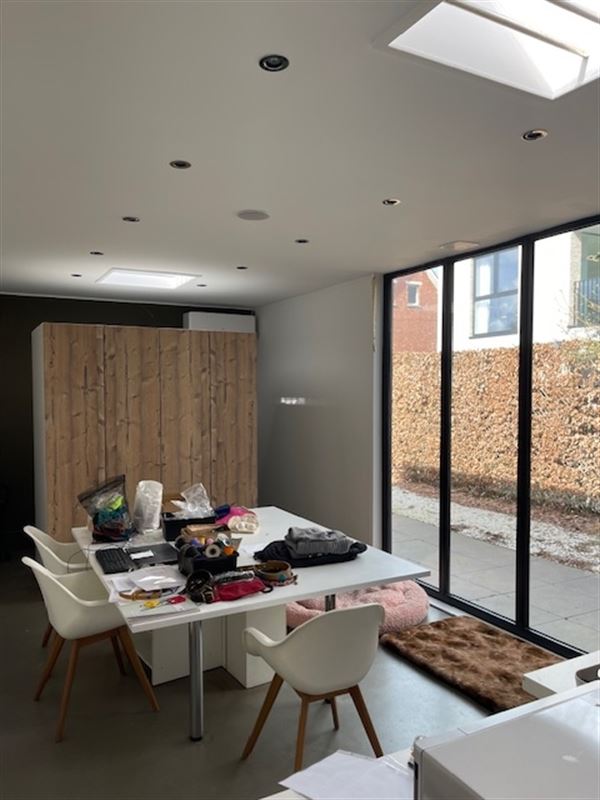 Het lichtrijke gelijkvloers beschikt over grote raampartijen die zorgen voor maximale zichtbaarheid en een aantrekkelijke etalage. Binnenin vind je een ruime, open en polyvalente indeling die zich perfect leent voor diverse activiteiten zoals een winkel, kantoor, praktijk of vrij beroep.